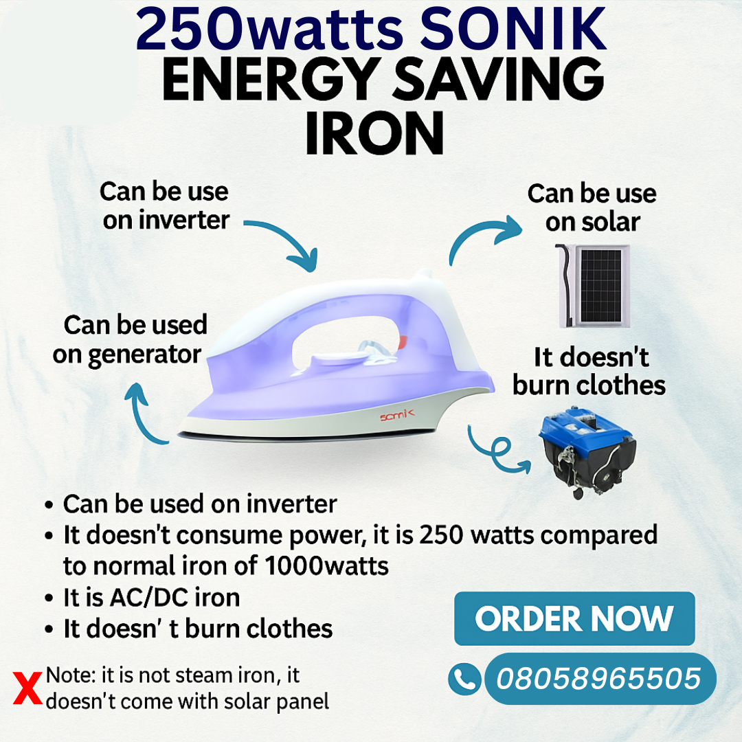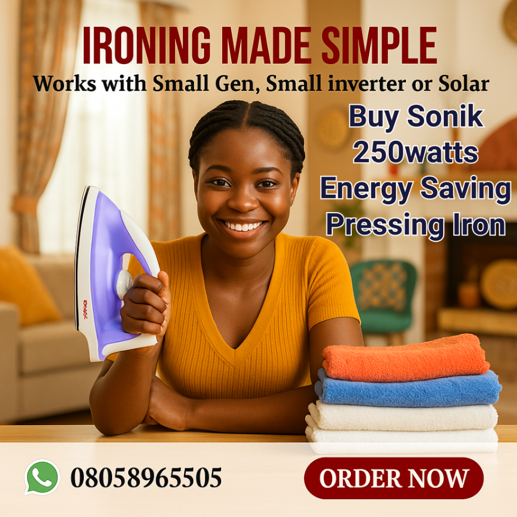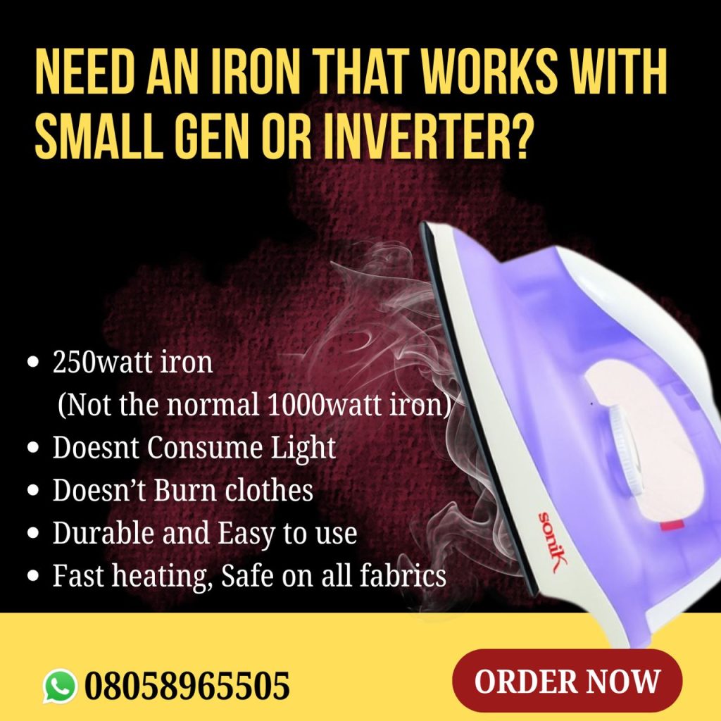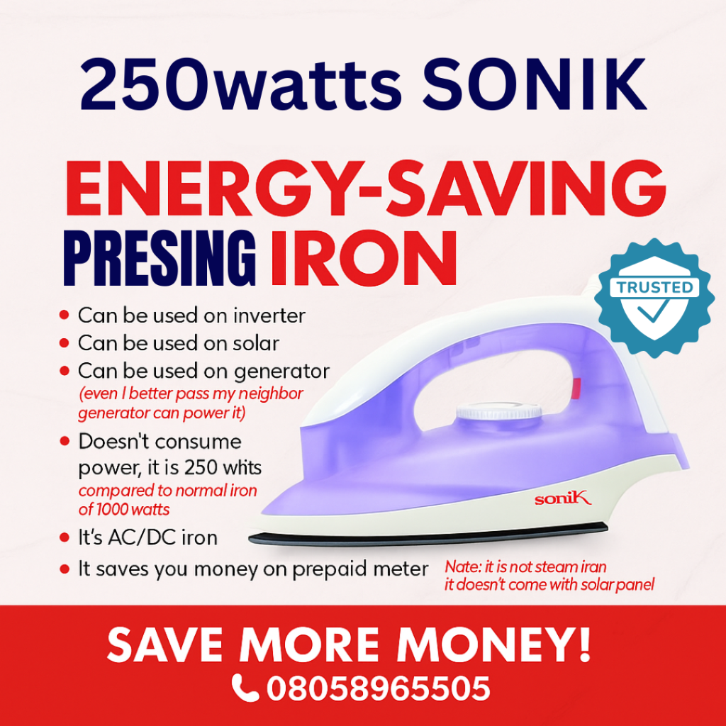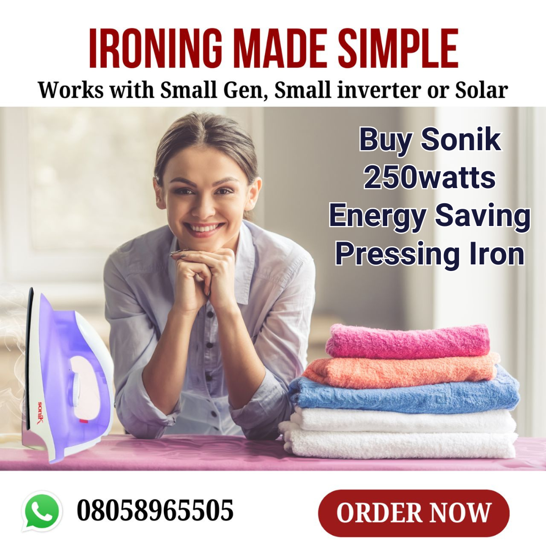 Let’s face it — in a country where NEPA is unreliable, you have small generators (I better pass my neighbor) and prepaid meter units vanish like breeze, using a regular iron (1,000W to 3000W) does not just make any sense and not smart at all. That’s why the Sonik 250W Energy Saving Dry Pressing Iron is a game-changer.