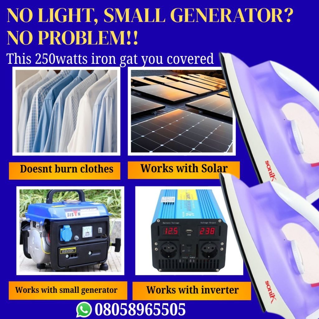 NOTE: Before Placing This Order, Please Ensure You Verify The Prices/Sizes Listed (This Sonik Iron Doesn’t Come With Solar Panel).